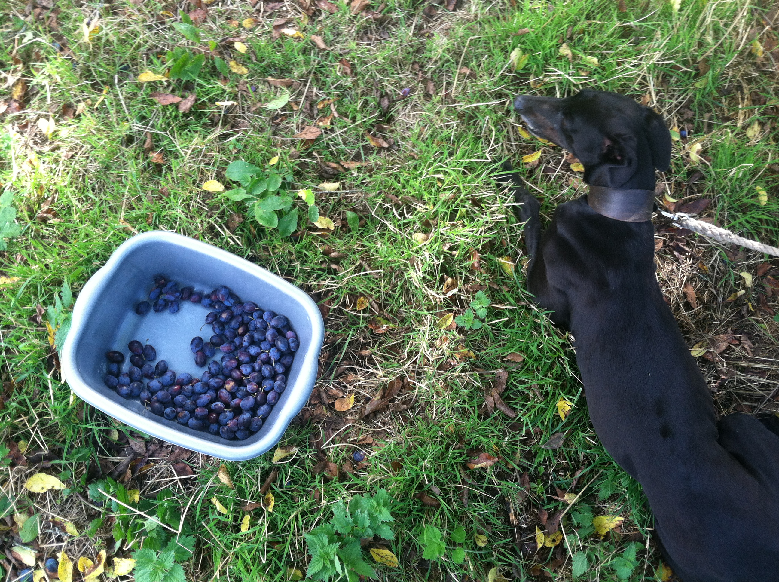 Sunday was a lovely day spent damson picking with Holly, David, Rex, Poppy, and friends. We were in a small orchard next to a pen with some funny little pigs who were running around, eating any apples that fell off of the neighboring apple trees. It was an absolutely idyllic scene, with the rain clouds giving way to sun just as we reached the orchard. It felt great to get outside and pick from fruit; we do a lot of fruit picking back home at this time of year also, so I was really happy to get my fill!